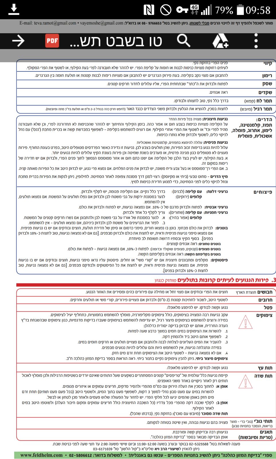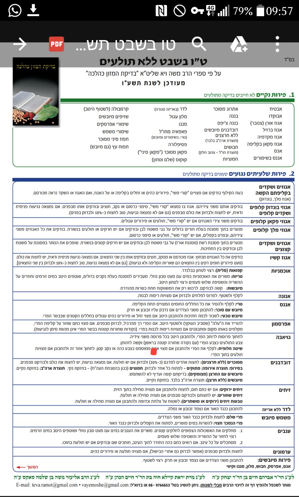 טבלת פירות ואופן בדיקתם, מעודכן לשנת תשע"ו על פי ספרי הרב משה ויא שליט"א.
