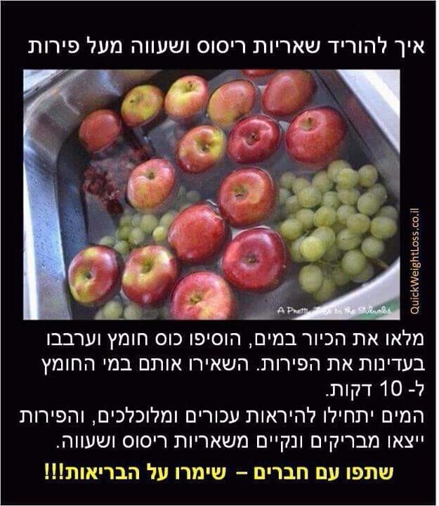 אופן ניקוי הפירות מחומרי ריסוס ושעווה