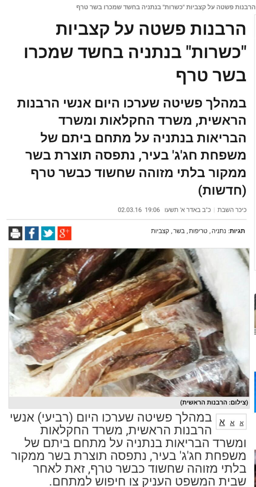 הרבנות פשטה על קצביות כשרות בנתניה בחשד למכירת בשר טרף לאחר שהוענק צו חיפוש מבית המשפט.