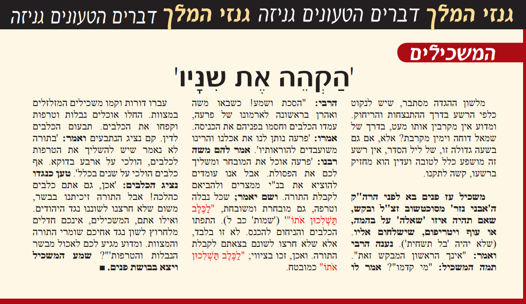 מוסר חזק ביותר בענין התרחקות מאכילת נבילות וטריפות. מתוך עלון גנזי המלך.