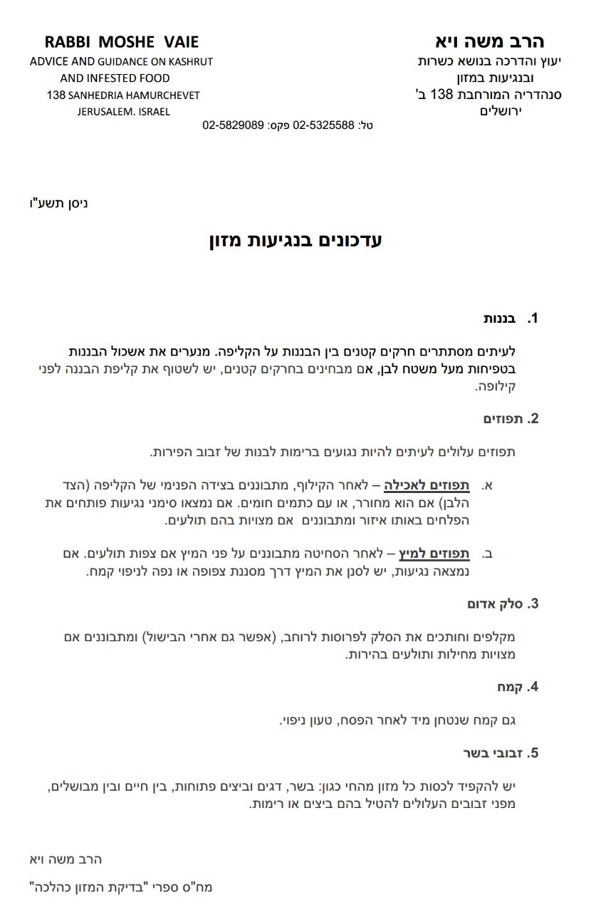עדכונים בנגיעות המזון - הרב משה ויא