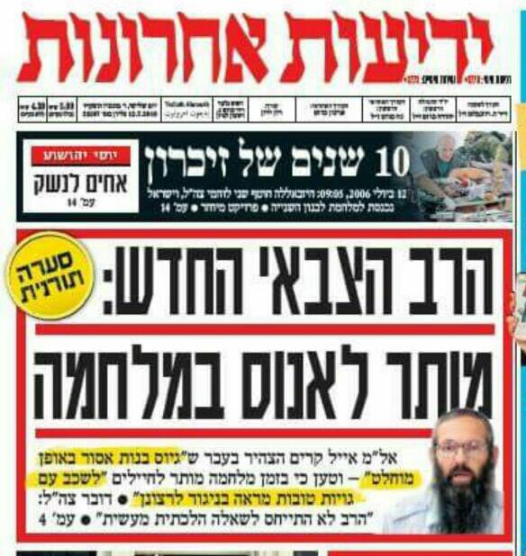 הרב החדש של צבא המדינה: מותר לאנוס במלחמה