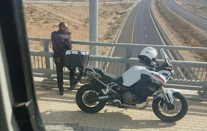בימים האחרונים מופצת בוואצאפ התמונה הזו של שוטר אוכף עם ממל"ז מגשר מעל כביש 6.