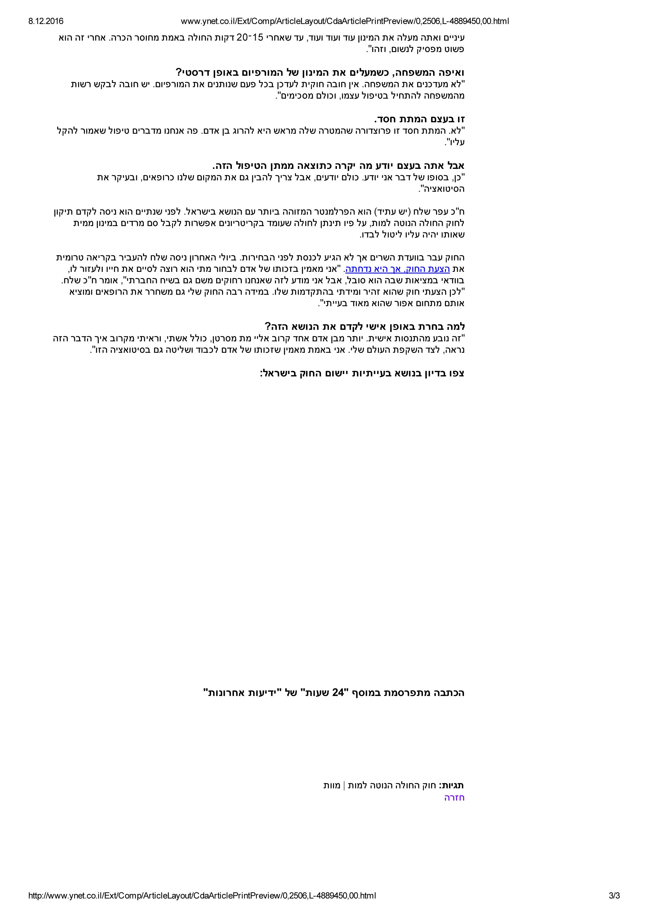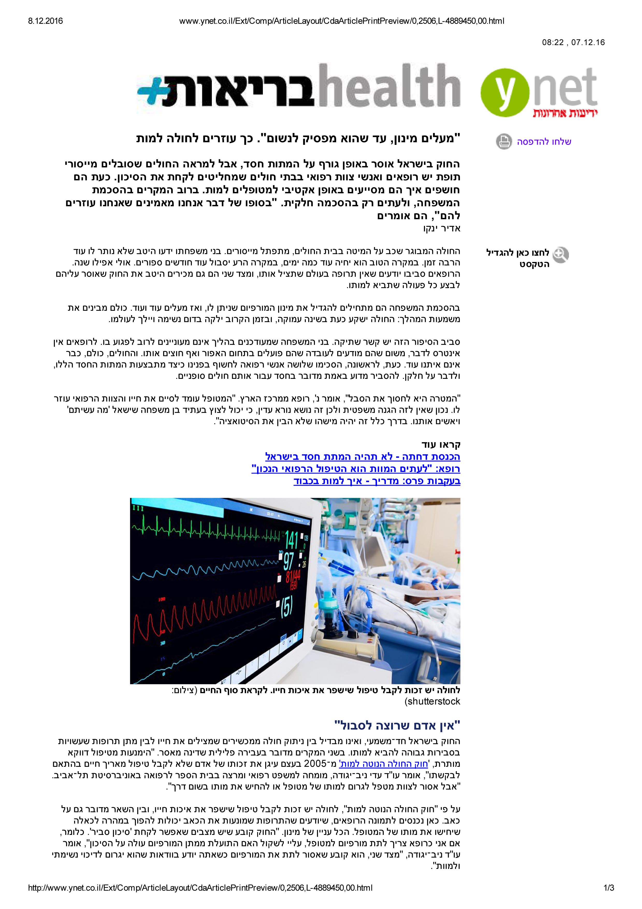 כתבה שהתפרסמה השבוע באתר ynet מגלה את שיטות הרופאים לקטוע חיים של החולה המרותק למיטה.