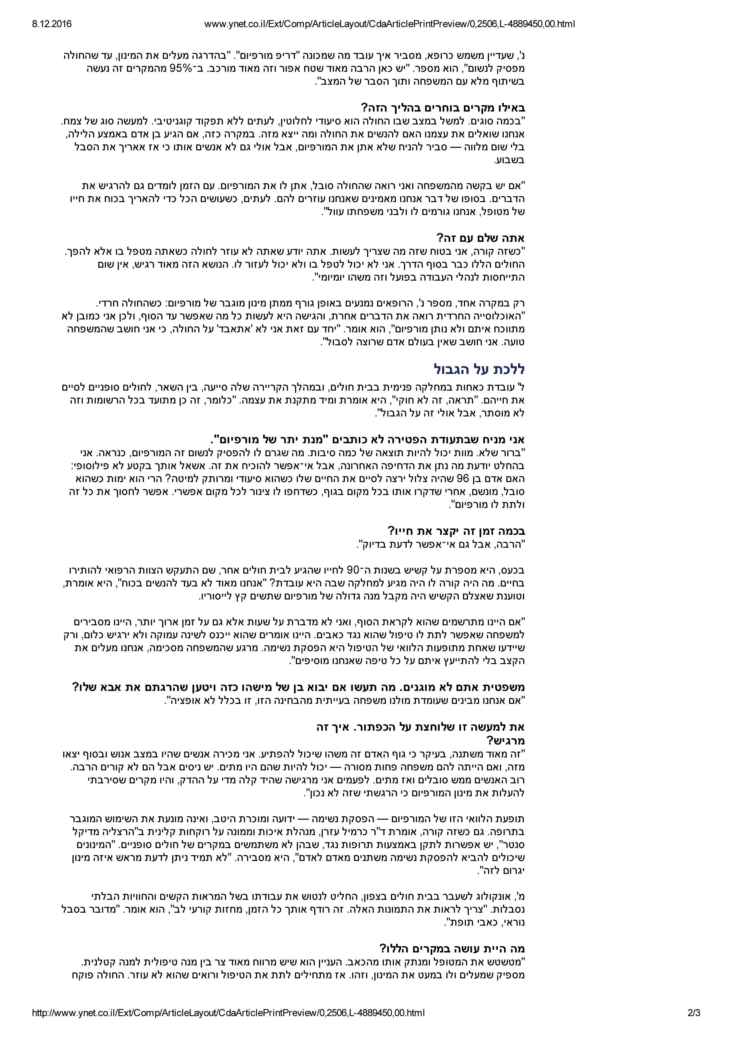 "החולה פוקח עיניים ואתה מעלה את המינון עוד ועוד ועוד, עד שאחרי 15-20 דקות החולה באמת מחוסר הכרה. אחרי זה הוא פשוט מפסיק לנשום וזהו... לא מעדכנים את המשפחה".