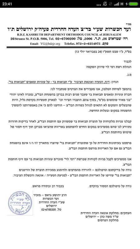 ועד הכשרות של בד"צ העדה החרדית יוצא במכתב חריף בטענה של זיוף, הטעיה ואונאת הציבור על ידי חברת 'תבואות בר'. לפניכם המכתב המלא.