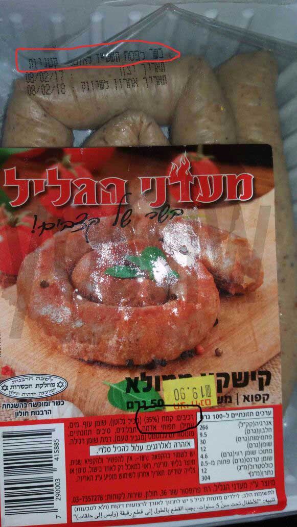 להלן דוגמא: מוצר בשם "קישקא ממולא" תחת ההשגחה של רבנות חולון בראשותו של אברמי פפושדו (אברהם יוסף), למעלה על העטיפה כתוב "כשר לפסח תשע"ז לאוכלי קטניות" ובתוך הרכיבים מצוין שמכיל "קמח 35%".