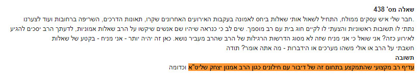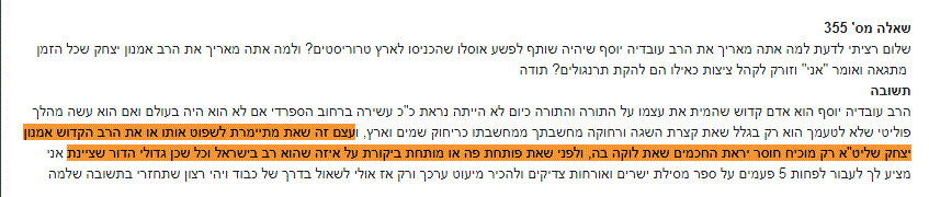 כבוד הרב היקר, ב"ה עכשיו זכיתי לצפות בראיון, לראות לא רק לשמוע וכל רגע התמוגגתי ושמחתי באיזה רב זכינו לדבוק כמה חוכמה ושנינות. קןדם כל אין מתאים יותר מכבודו להביאו לערוץ שהמראיין כינה אותו ״קול האמת״ אכן רבנו הוא הוא קול האמת שאפשר להשתמש בדמות רבנו כלוגו ״האמת״ שנשמע 40 שנה + ויישמע לנצח אמן. לא צריך להיות מומחה בשפת גוף להבחין איך הרב יושב נינוח בשילוב ידיים שנשאל שאלות והתשובות נשלפות במהירות, שנינות, חינניות בחדות מיוחדת במינה בחיוך ובחן שהשי"ת חננו… מצא חן בעיני ה׳. רק איש אמת כרבנו יושב נינוח ורגוע… כי רק איש אמת שמדבר מהלב שפיו וליבו שוים יושב רגוע מחייך ושולף תשובות חדות כמו תער... זה אחת הסיבות מיני רבות שגרמו לי לדבוק ברבנו כשפגשתי לראשונה ביוטיוב… שעונה בשלוף 40 שנה לאלפי שואלים שמפתיעים בשאלות והתקלות לכאורה, נסיונות שווא להתקלות יותר נכון… …ולא שהרב יודע את השאלות מראש ומסוננים גם עבורו מראש בפתקים חחח חחח ב"ה הרב עומד אמיץ חזק ובלי פחד מול כל שאלה שתשאל כי אמת יש אחת!!! המראיין סיכם את זה ב 4 מילים, כששאל את רבנו על ספייקס (ספק) והרב ענה ״ספק זה עמלק״ - ״אי אפשר להתמודד איתך״ ב-4. המילים האלה המראייין סיכם את עוצמתו של הרב את החוכמה והבינה והשכל החד והחריף שהשי"ת חננו... שאף אחד לא יכל ולא יכול ולא יוכל על רבינו "בֵּן פֹּרָת יוֹסֵף בֵּן פֹּרָת עֲלֵי עָיִן" (בראשית מט, כב). אלפי מיליוני סרטונים של שו״ת ביוטיוב יעידו על כך שכל מי שניסה לקנטר, להפיל, לבלבל, לעצבן, לנסות להוציא מריכוז וכו' וכו' את רבנו לא צלח והשואל חזר הביתה עם זנב בין הרגליים… רק יחידי סגולה מצליחים בכך... יה"ר ברכת ה׳ עליך תמיד תהיה ..ותמיד תמשיך להיות ״וְאִם תּוֹצִיא יָקָר מִזּוֹלֵל כְּפִי תִהְיֶה״ (ירמיה טו, יט) קול השי"ת מדבר מגרונך... תודה לכבודו על כל הפרשנות והניתוחים על טראמפ וכו׳ שבזכותו ובזכות פרשנותו מצליחה להבין מה קורה בעולם, מי נגד מי. כל ראיון כזה גורם לשמןח יותר להפנים יותר לעכל יותר (לא מובן מאליו אף פעם) זכות נפלה בחלקנו שאנחנו דבקים בך, בדרכך, בשעורייך בכל! יהי רצון שנזכה תמיד לדבוק באיש יקר וחשוב לעם ישראל בכלל ולנו בפרט... המושיע הפרטי שלנו, שנשתל מלמעלה עבורנו כדברי הגדולים שמעידים על רבנו! וכמו שהרב אמר פעם לבחור בשו״ת שאמר לרב ״איפה אנחנו ואיפה אתה הרב בעולמות העליונים, פה אנחנו זוכים איך שהוא...' והרב ענה; ״אבל יש עצה מי שיידבק בי יש לו חלק ממה שאקבל שם״ יהי רצון שנקבל ולו פיסה... שהשי״ת תמיד אוהב אותך! ותמיד תמצא חן בעיני השי"ת ...חן חן תמצא, חן חן מצא! תודה על שעה ורבע של ראיון של אושר! ישר כוח ועלה והצלח ביתר שאת ועוז אמן (הרב אמנון יצחק בראיון אחד על אחד אצל אלעזר שטורם ערוץ TOV).