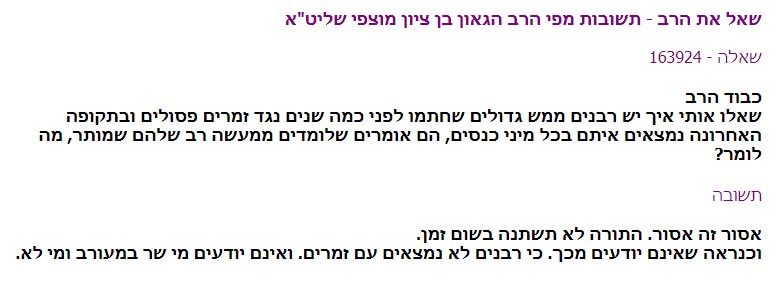 תשובות הרב מוצפי בעניין זמרים פסולים
