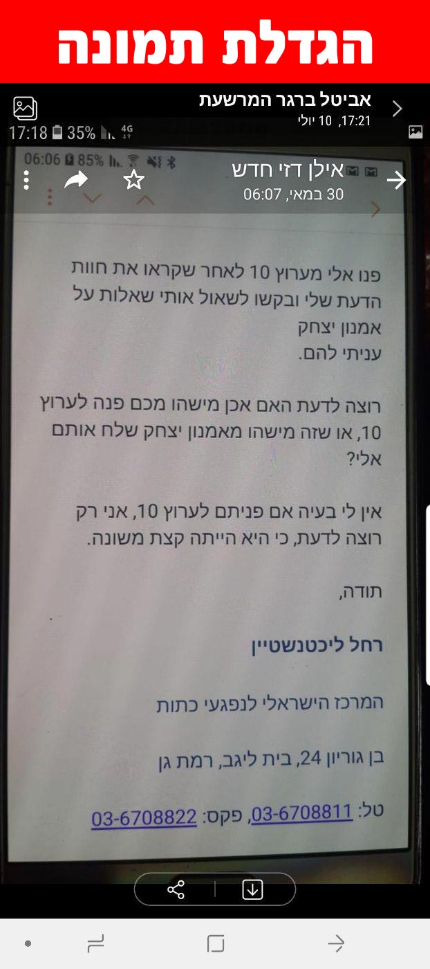לכבוד רבנו הקדוש והיקר, אני מרגישה חובה גדולה, להודות לרב ולפרסם את הנס הגדול שב"ה זכיתי לו בזכות ברכת הרב. זמן רב סבלתי מגירודים קשים שלא פסקו, יום ולילה, ושום משחה או טיפול לא הועילו כלל (ל"ע). מאז שזכיתי לברכת הרב - הכול נעלם לחלוטין, כאילו לא היה מעולם, ממש ראיתי בחוש את כוח הברכה ואת הסיעתא דשמיא הגדולה שיש לרב. אני מודה לה' יתברך על הזכות הגדולה לקבל את ברכת הרב, ומרגישה חובה לפרסם את הנס ולעשות קידוש השם. יהי רצון שהקב"ה ישלח לרב בריאות איתנה, אריכות ימים ושנים, שפע ברכה והצלחה, וימשיך לזכות את הרבים בעצות, בברכות ובישועות (אמן). תודה רבה לרב מעומק הלב על הכול.