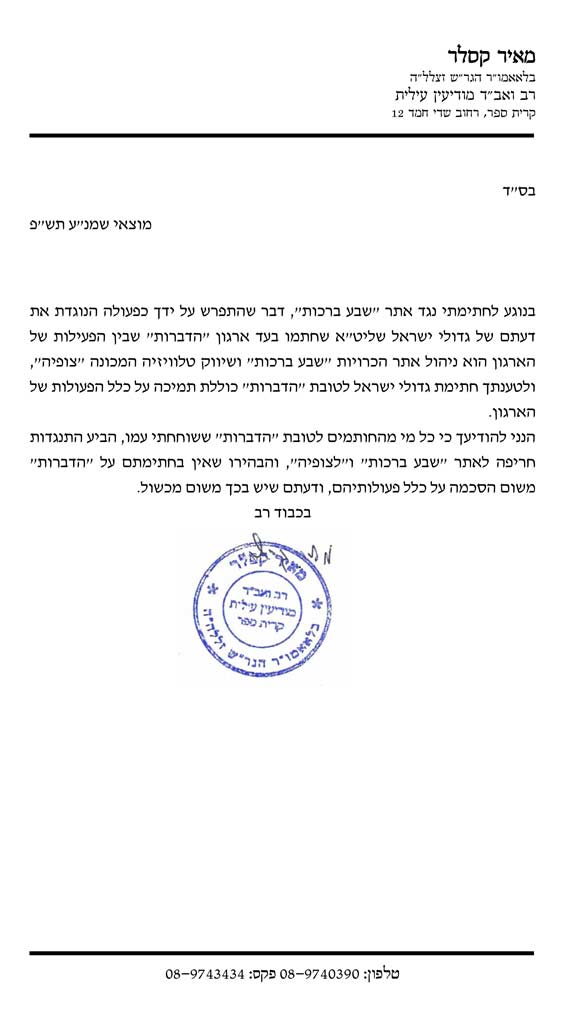 הרה"ג קסלר מעיד שהידברות משקרים שיש להם היתר לצופיה ולאתר הזימה שבע ברכות