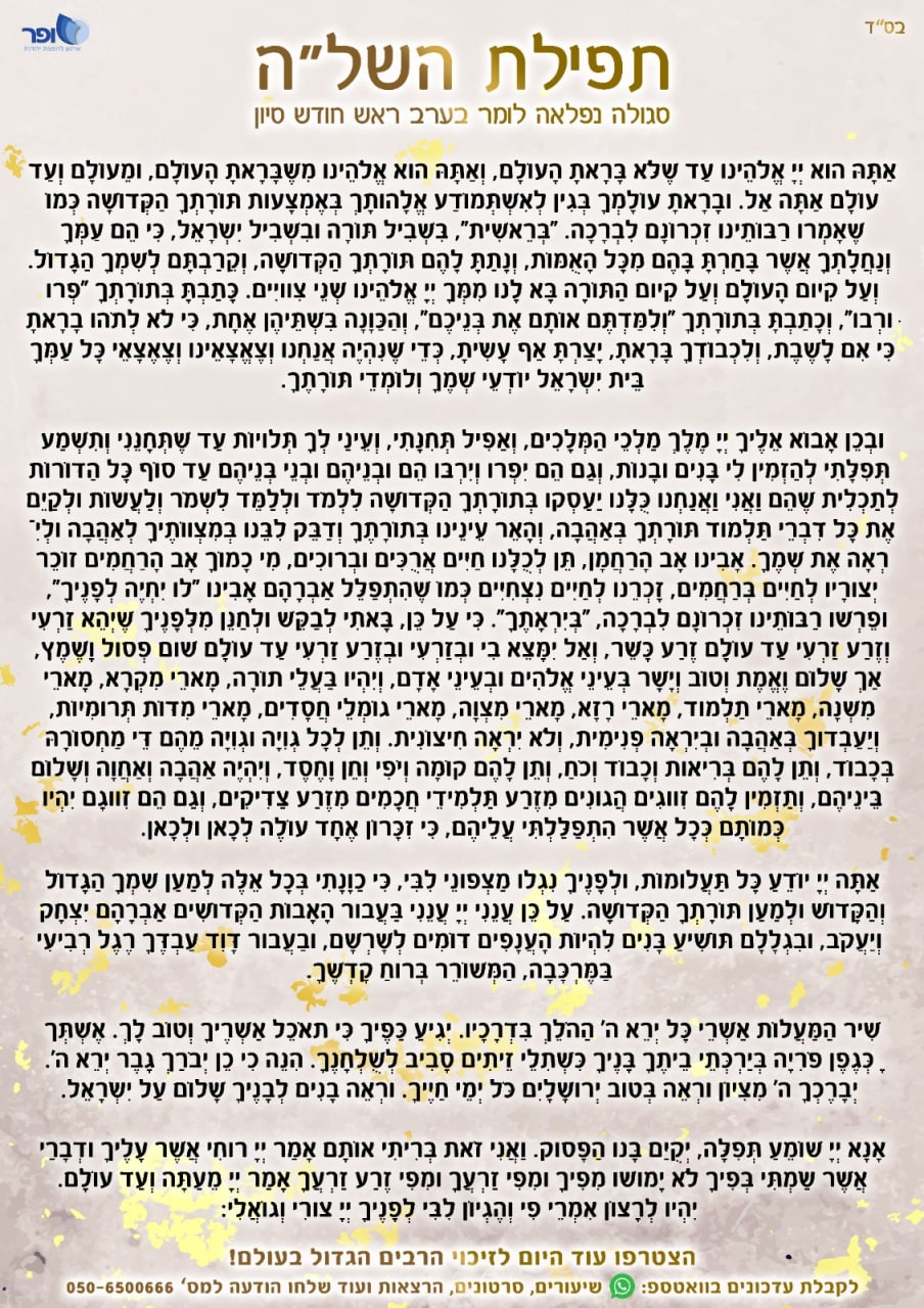 תפילת השל"ה - סגולה נפלאה! לאומרה בערב ראש חודש סיון