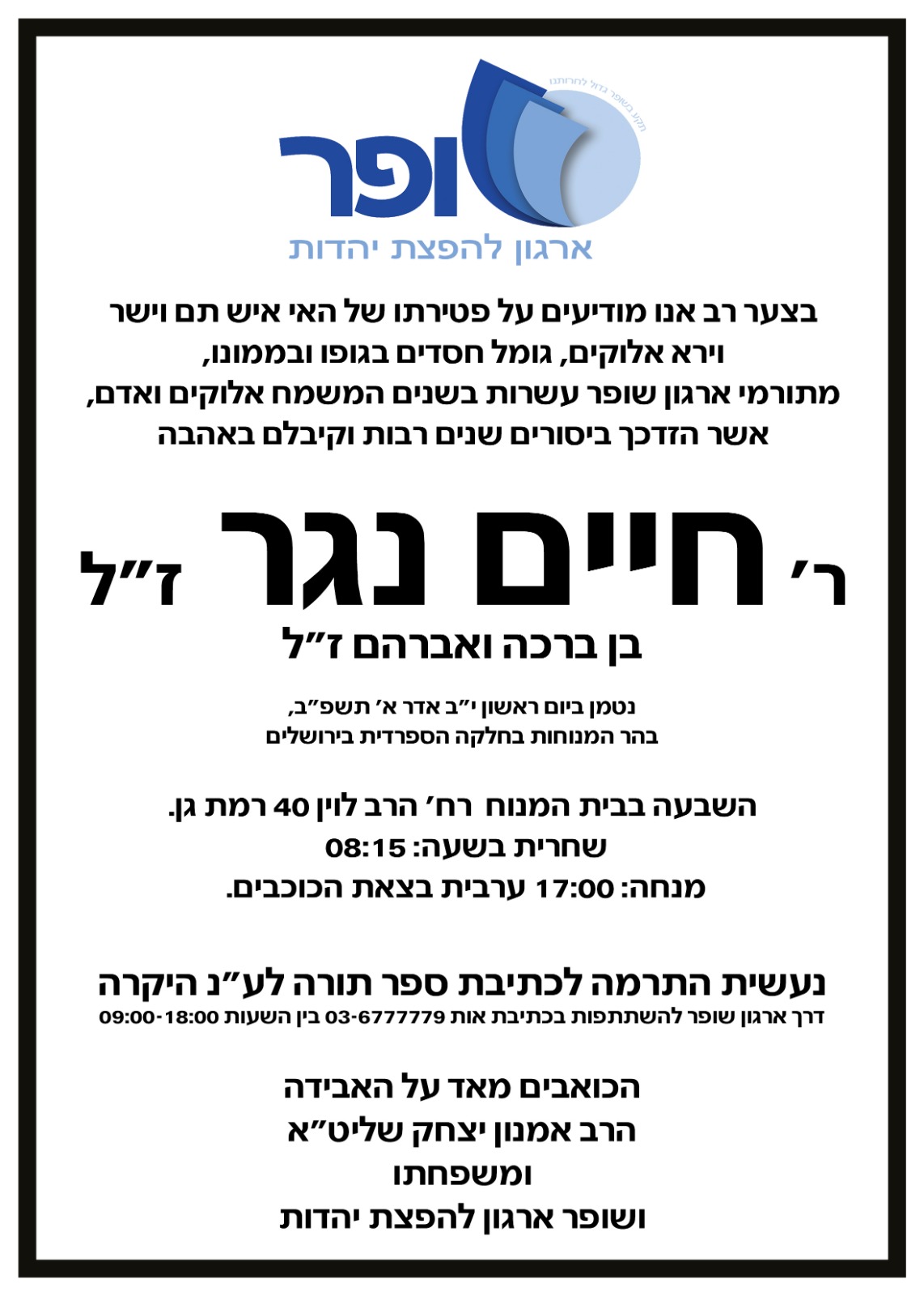 אשר המנוח ז"ל הטיב חסדיו ועשה הוראות קבע לכל מבצע שב"ה שופר הוציא לפועל ועוד...