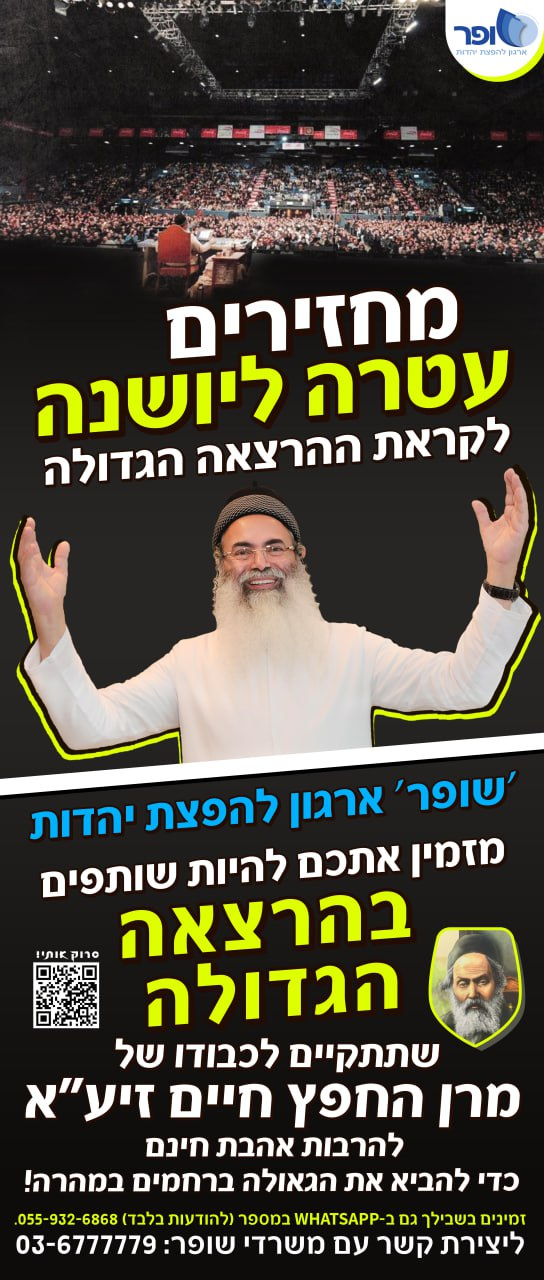 או לתרומה ישירה דרך אתר 'שופר' - לחץ כאן.