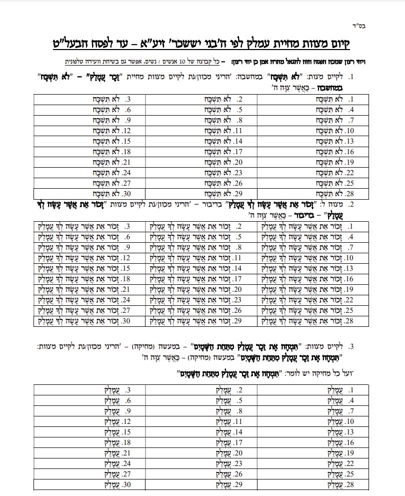 קיום מצוות מחיית עמלק לפי ה'בני יששכר' זיע"א – עד לפסח הבעל"ט