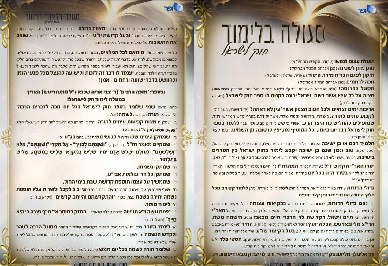 הסגולות בלימוד 'חוק לישראל' - עדכון 19.12.2024