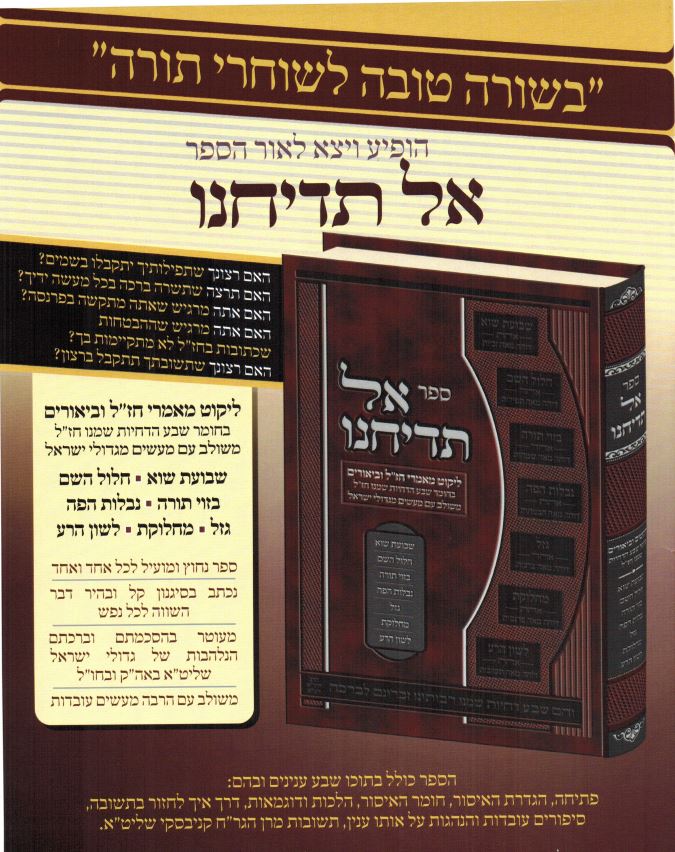 בשורה טובה לשוחרי תורה הופיע ויצא לאור הספר אל תדיחנו