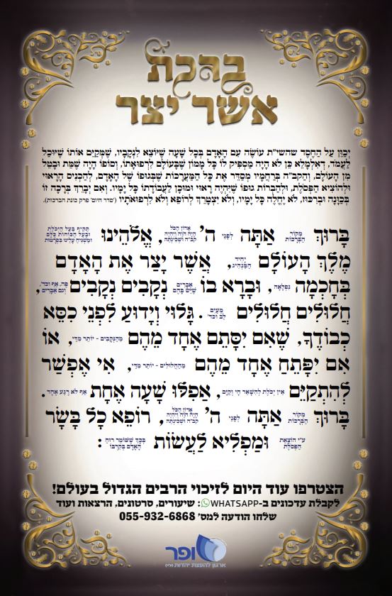 וסרטון ממדור 'הכה את המומחה' מכבוד הרב שליט"א: 'קטע חשוב ונוקב על ניסי הניסים שבגוף וברכת אשר יצר'