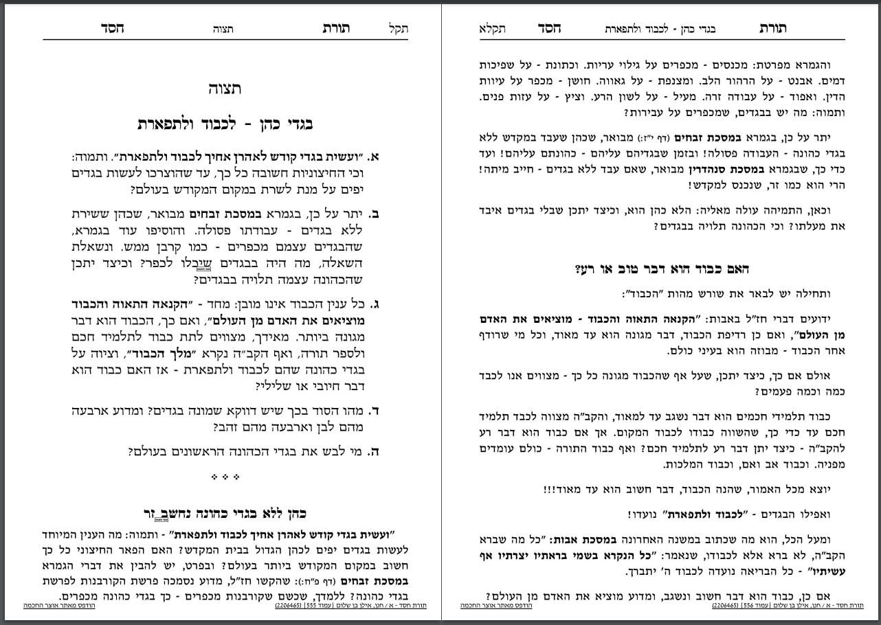 מאמר: בגדי כהן – "לְכָבוֹד וּלְתִפְאָרֶת"