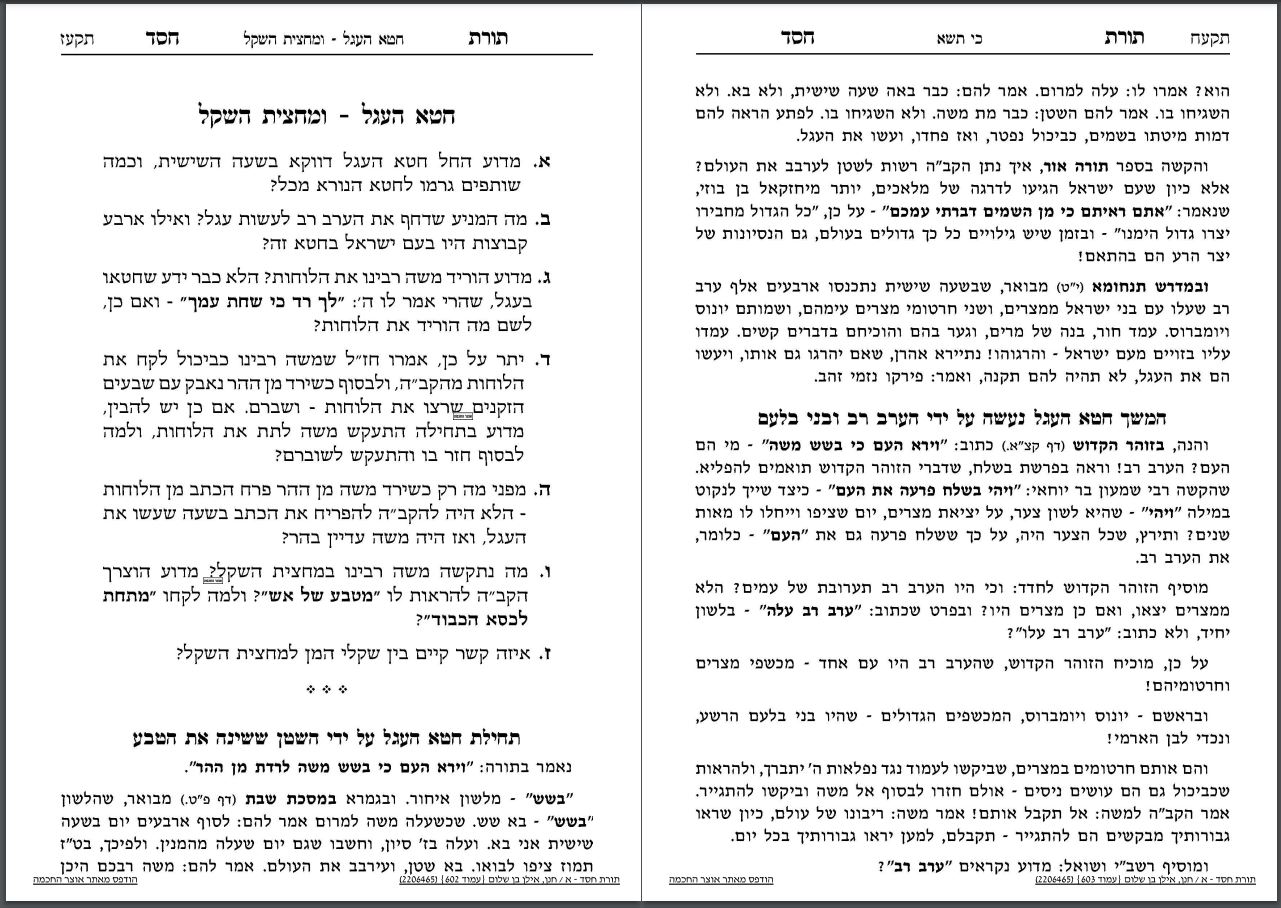 [קרדיט: גם מאמר זה על פרשת כי תשא מתוך הספר הנפלא! 'תורת חסד'