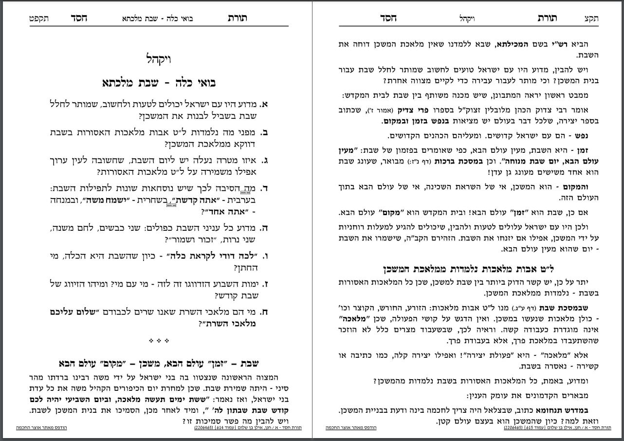 [קרדיט: גם מאמר זה על פרשת ויקהל מתוך הספר הנפלא! 'תורת חסד'