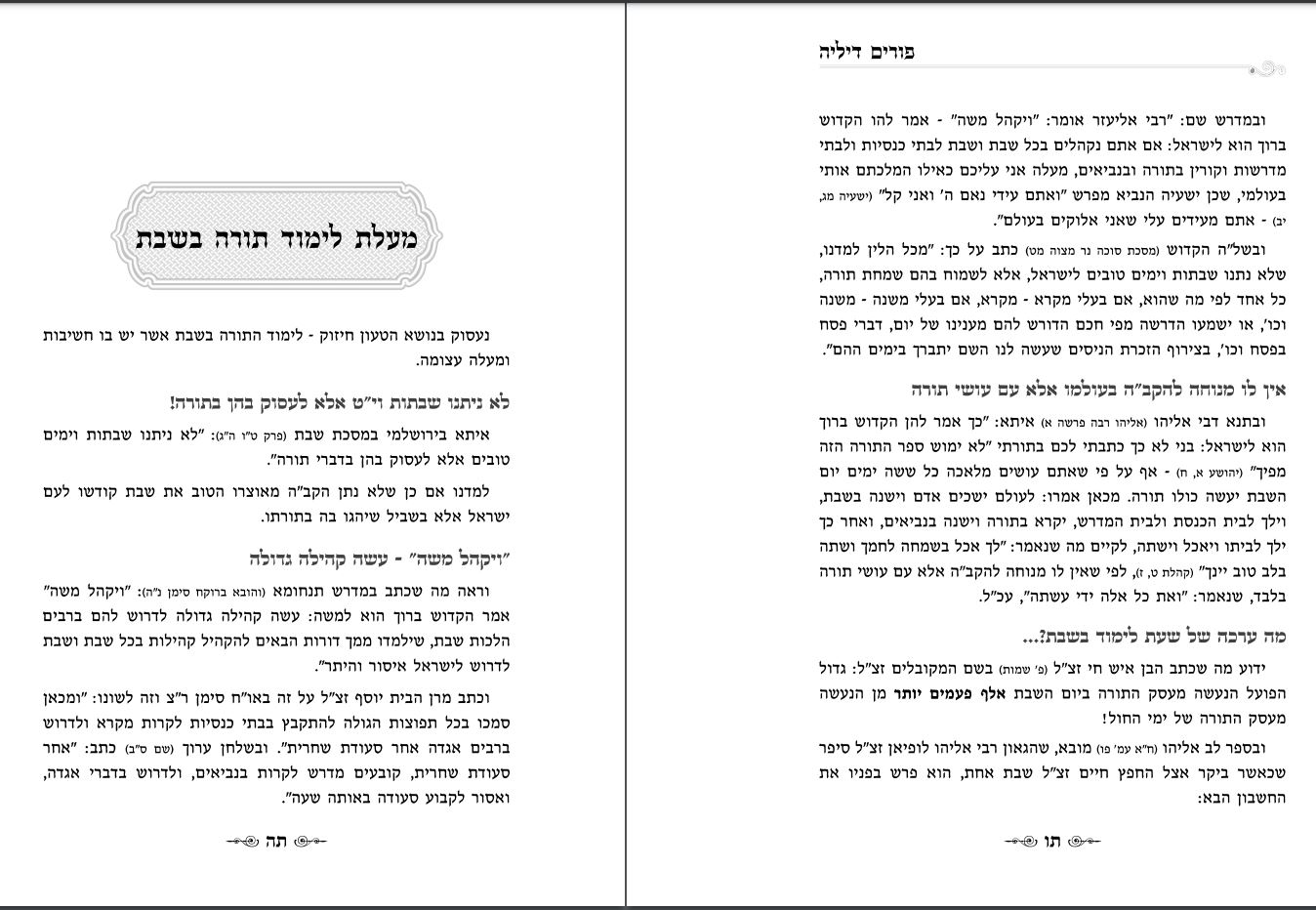 מעלת לימוד תורה בשבת