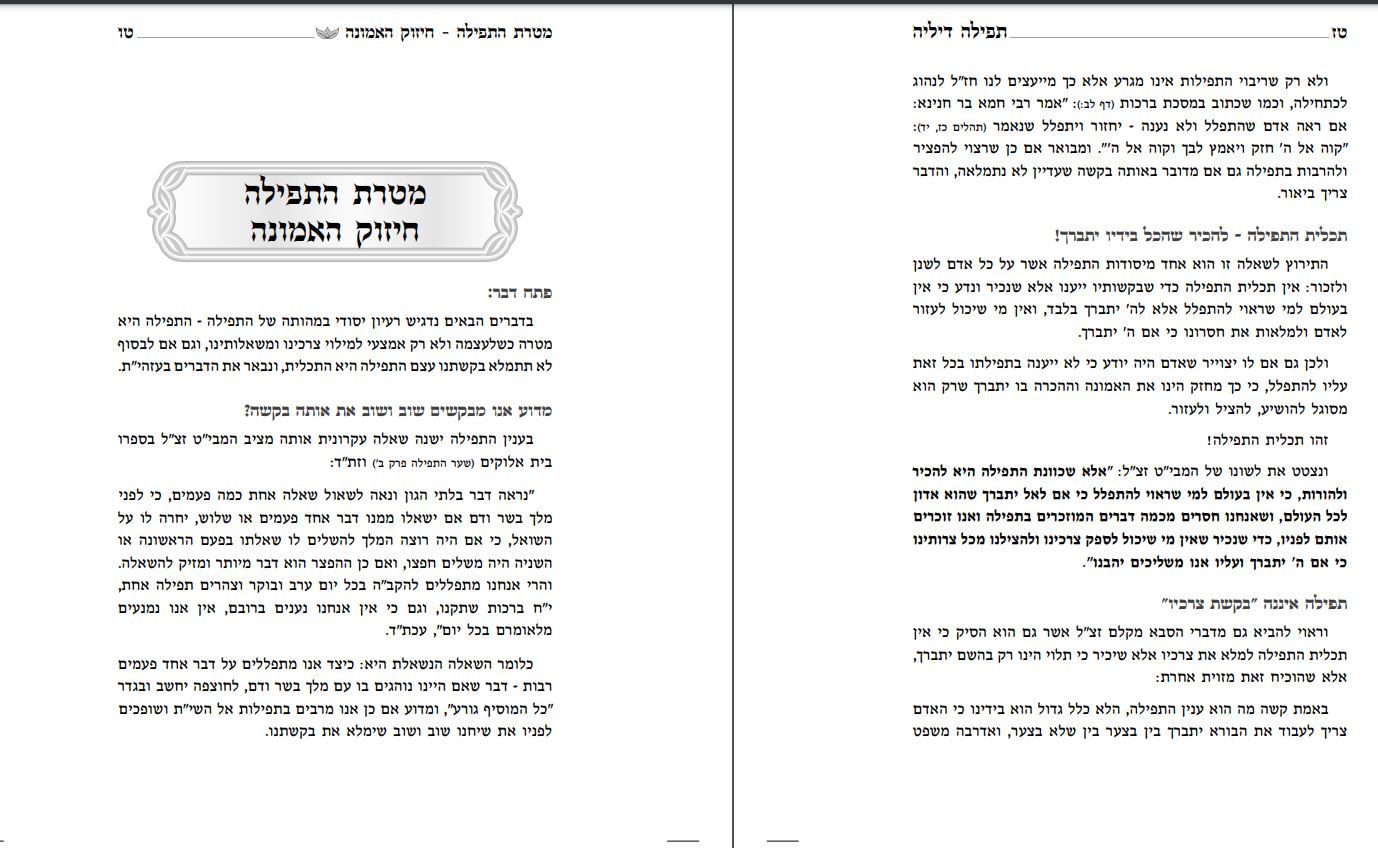 ובמאמר זה ידובר על: מטרת התפילה - חיזוק האמונה
