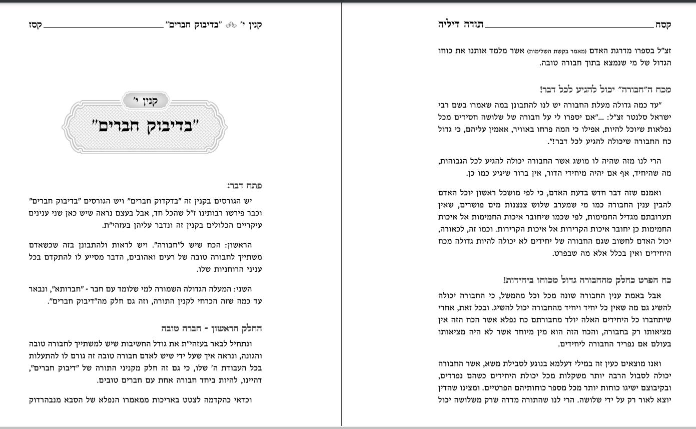 ונתחיל לבאר בעזהי"ת את גודל החשיבות שיש למשתייך לחבורה טובה והגונה, ונראה איך שעל ידי שיש לאדם חבורה טובה זה גורם לו להתעלות בכל העבודת ה' שלו, כי גם זה חלק מקניני התורה של "דיבוק חברים", דהיינו, להיות ביחד חבורה אחת עם חברים טובים.