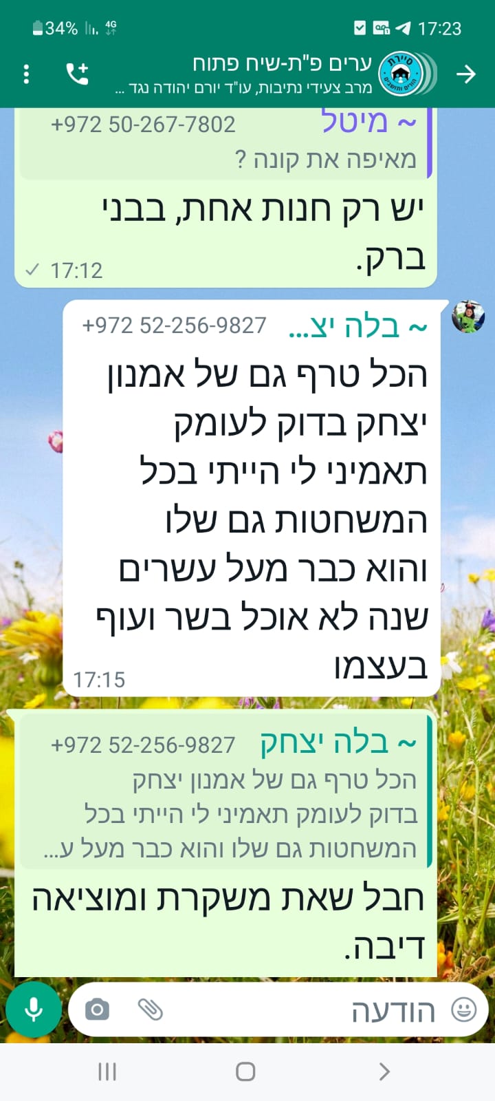אני בלה יצחק, ת.ז. 118758010 מתנצלת על הדברים שכתבתי על כב' הרב אמנון יצחק בקבוצת הווטסאפ "ערים פ"ת-שיח פתוח" ביום ,17.8.1112 לגבי כשרות מוצרי הבשר והעוף של חברת חנג'ורי בסטרי בע"מ. אני חוזרת בי באופן מוחלט מכל מה שכתבתי על כב' הרב אמנון יצחק, ומבהירה כי בניגוד למה שכתבתי – מעולם לא הייתי אפילו במשחטה אחת שקשורה אליו ואין לי שום ידיעה לגבי דברים אלו. כמו כן אני מבהירה, כי אין ולא היתה לי היכרות אישית עם כב' הרב אמנון יצחק, או קשר כלשהו לכב' הרב אמנון יצחק או למי מבני משפחתו. כל מה שכתבתי באותה הודעה בקבוצת הווטסאפ היה שקר, ואני חוזרת מהדברים שכתבתי באופן מלא. על החתום ____________ בלה יצחק [להורדת המכתב התנצלות החתום בידי הנ"ל לחץ כאן]