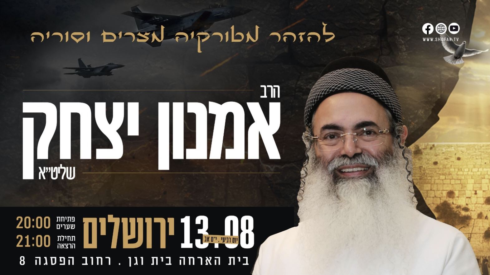תאריך: 13.08.2025, יום רביעי, שעה: 21:00, עיר: ירושלים, כתובת: הפסגה 8, מיקום: בית הארחה בית וגן. יהודים יקרים! אתם מוזמנים לרכוש ספרי קודש ולקבלם בערב ההרצאה!! לפירוט הספרים בכתבה לחץ כאן