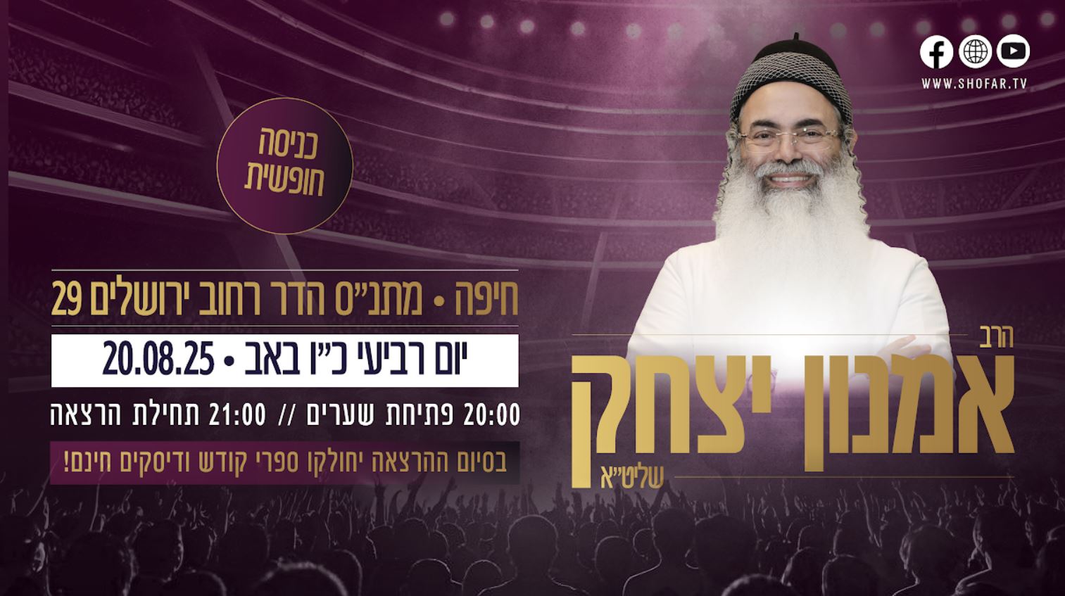 ניתן לקבל צינתוק בשופרקול בהתחלת שידור חי... 8724*.