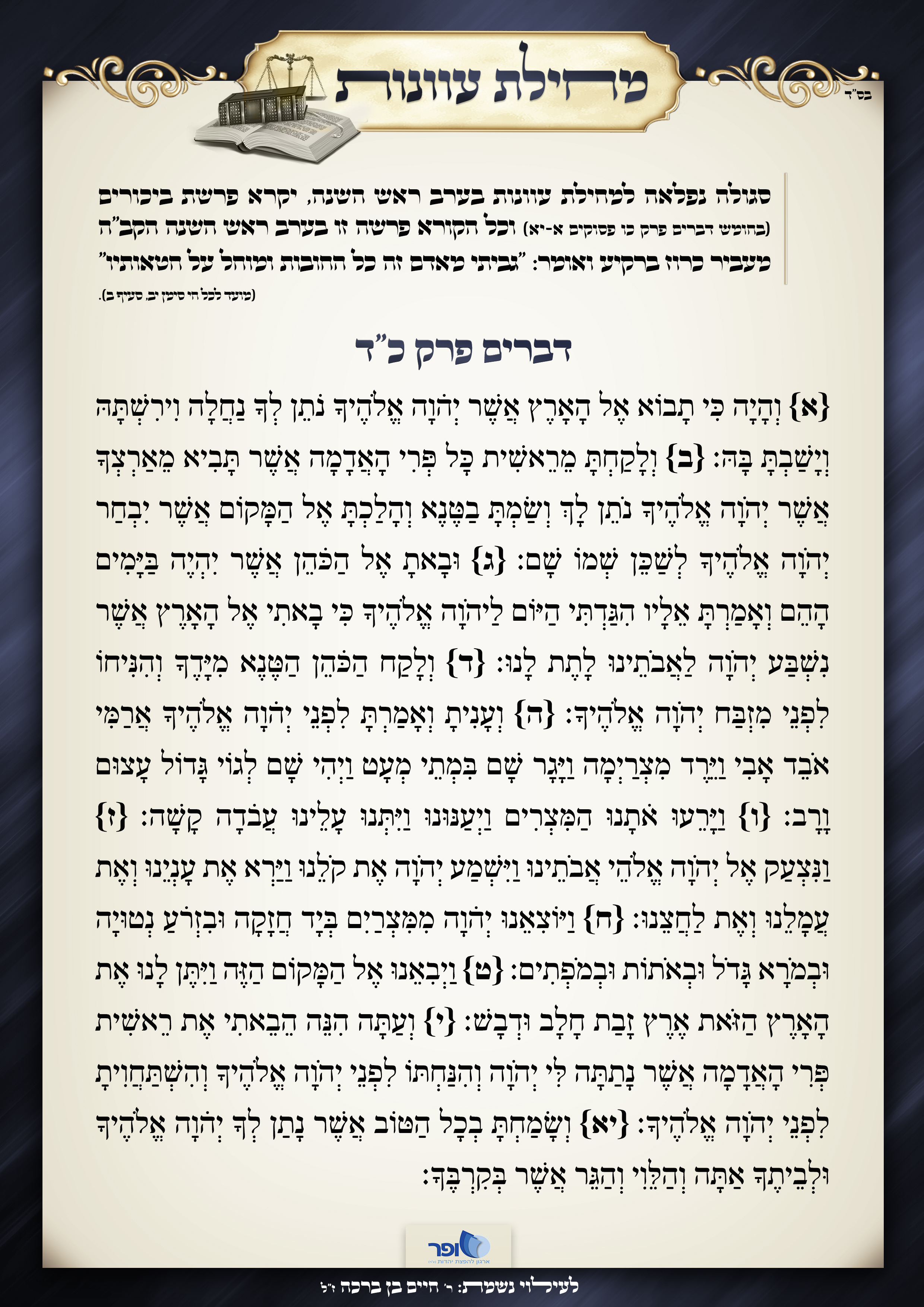 ב"ה מצ"ב הסגולה למחילת עוונות הנאמרת בערב ראש השנה - לחץ כאן (קובץ PDF).