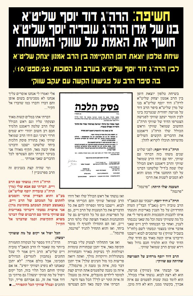 נ.ב. עדותו של הרב דוד יוסף הוקראה בפני הרב יעקב יוסף זצ"ל בירושלים בבית כנסת ברוכוב בשנת תשע"א