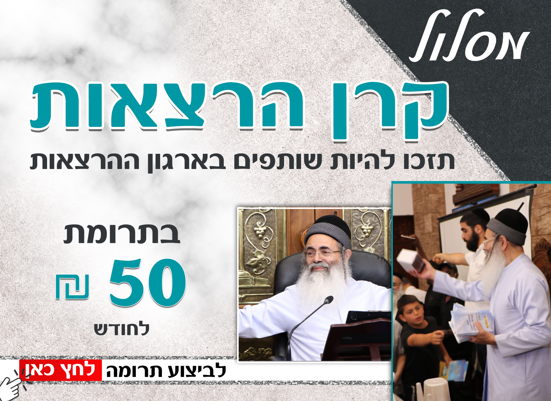 בתרומת 50 ₪ למשך 12 חודשים - תזכו להיות שותפים בארגון הרצאותיו של הרב אמנון יצחק שליט"א ברחבי הארץ.