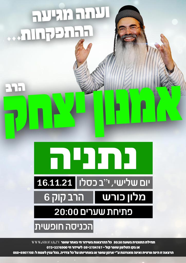 בס"ד, אחרי ההצלחה בהרצאה באור יהודה 02-11-2021 'אברהם אבינו הנחיל לנו את דרך הצדקה' (ראה שידור חוזר) התקיימה הרצאה בראש העין 08-11-2021.