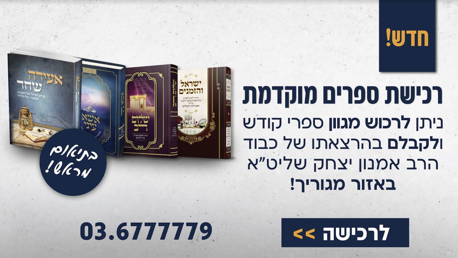 ציבור יקר! אתם מוזמנים לרכוש ספרי קודש ולקבלם בערב ההרצאה!! לפירוט הספרים בכתבה לחץ כאן
