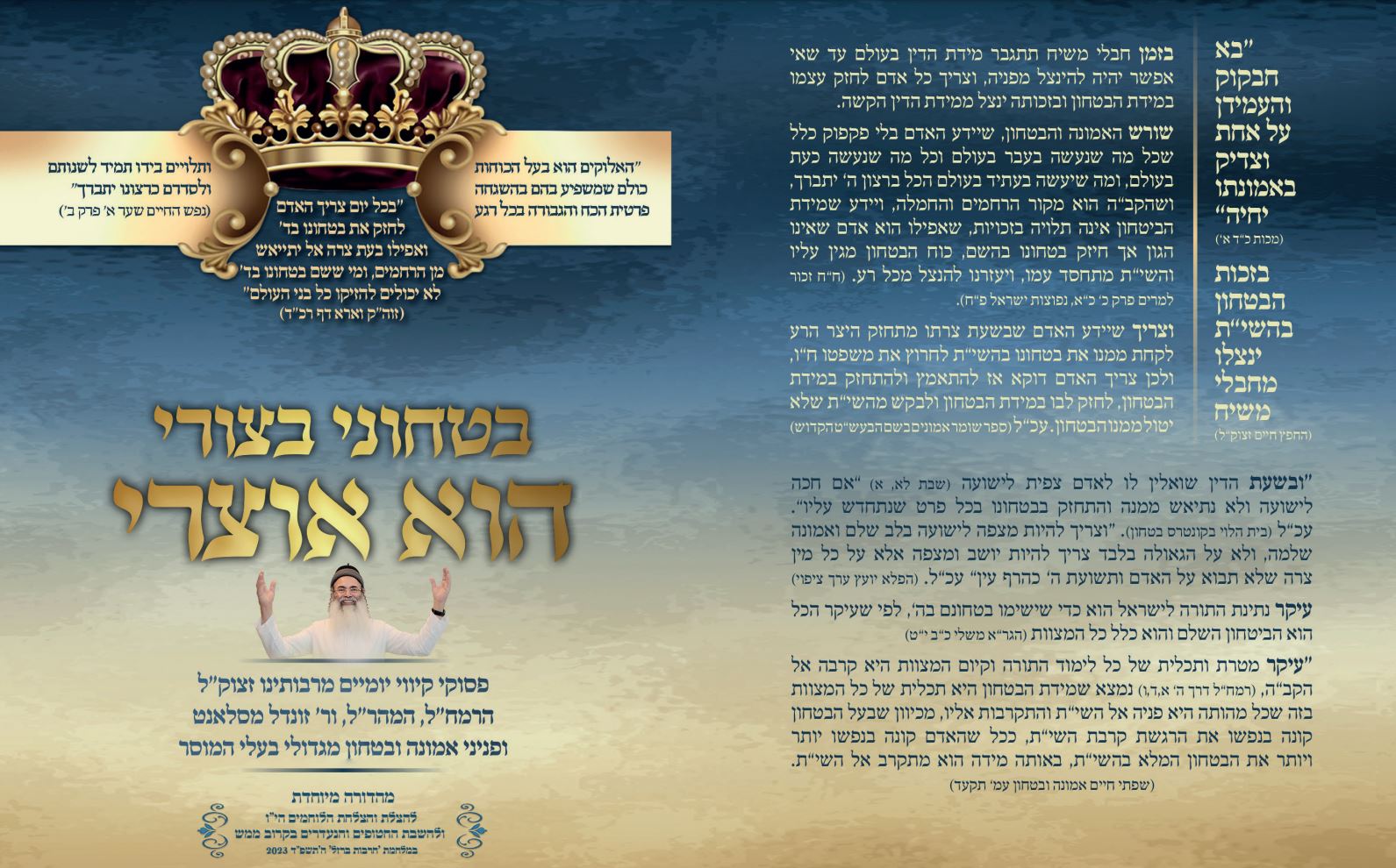 כדי לחזק את כל הלוחמים ואת כל העם אנחנו מתחילים בסדרה חדשה, בימי הלחימה האלה, לחזק את הבטחון בהשי"ת, וזה יקרא: 'שיעורי הצלה ע"י בטחון ה' בלבד'.