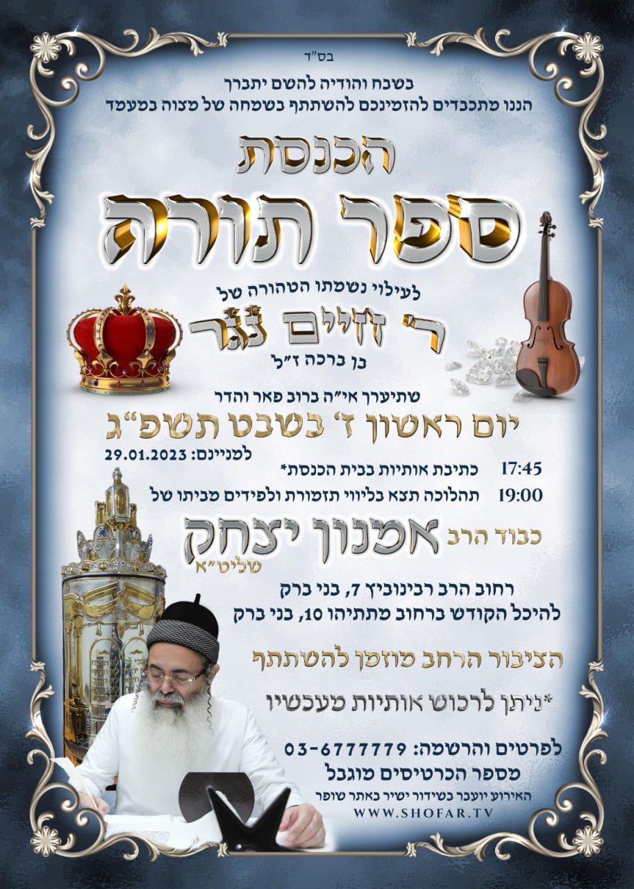 ב"ה דרשה זו נמסרה בסעודת מצוה שהתקיימה בהכנסת ס"ת לע"נ ר' חיים נגר ז"ל.
