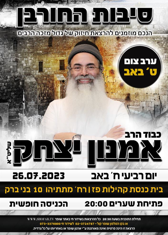 - - - אין זה התמלול, אלא עיקר הדרשה ע"פ הספר 'הראנו בבנינו' באדיבות הרב אברהם חנונו שליט"א - ישר כוחו! (לכתבה על ספריו - לחץ כאן) - - -